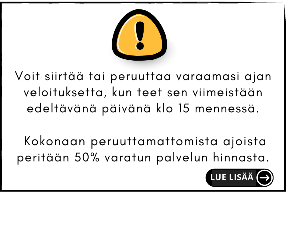 (Kesto n. 75min. Tämän ajan saat varattua soittamalla.)